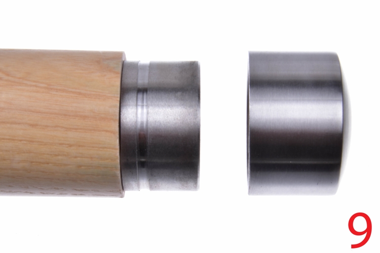 Die Montage ist für alle Zubehörteile gleich, egal ob Sie nun eine Endkappe oder ein Verbindungsstück aus Edelstahl an Ihrem Holzhandlauf montieren möchten. (Abbildung 01)